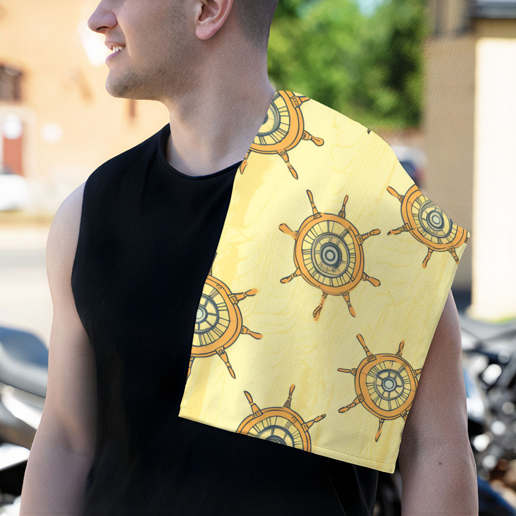 Marine Pattern Sport Towel is sewn around the edges, making it durable and long-lasting