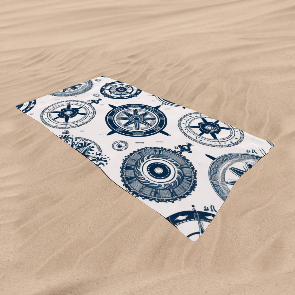 Nautical Pattern Beach Towel – Gift for Friends – Ship Wheel Bathroom Accessory