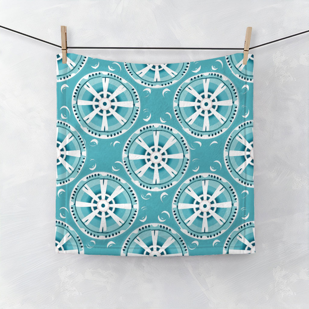 Ship Helms Pattern Face Towel - Sea Themed Item - Unique Bathroom Accessory Bathroom Face Towels Home and Garden Towels